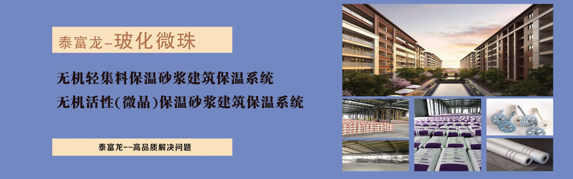 泰富龍自2006年成立以來,始終專注致力于石膏基與水泥基干粉砂漿領(lǐng)域及建筑節(jié)能領(lǐng)域產(chǎn)品的研發(fā)、生產(chǎn)、銷售和干粉建材在工程實(shí)踐中的應(yīng)用。